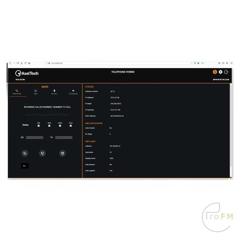 The new Macrotel X Multimode range does not require the installation of any software: the unit has an integrated Web server supporting the most popular browsers (Chrome, Firefox, Explorer, Opera, etc.). A simple and intuitive GUI can be accessed through any device: PC, notebook, tablet, smartphone, etc. For services synchronization and logs the Macrotel connects to a NTP server.The main XLR input and output connectors can manage analogue or AES/EBU signals according to the device settings (AES/EBU input/output is optional). A second XLR analogue output is anyway available. In Bluetooth mode the two outputs act like a stereo balanced output. Macrotel X Multimode is able to record the telephone calls audio on a USB flash memory plugged in the USB front panel slot.