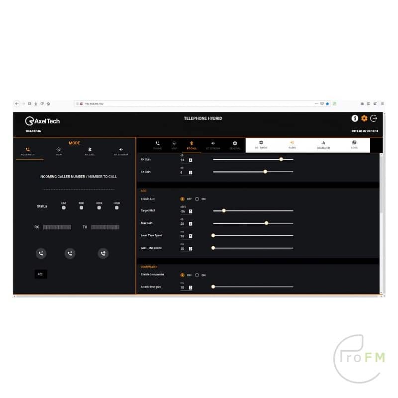 Automatic telephone line release based on the “dropped line” tone (this feature can be disabled). Adjustable AGC, Compressor/Limiter and Equalizer parameters.