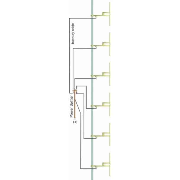 The BBDP6 Vertical Polarization Dipole Antenna series system is designed for FM Broadcast Band (87,5 -108 MHz). Each antenna is composed of one balun feed vertical dipole and is made from stainless steel. Available in different power handling versions and complete with 6 antennas, powersplitter and coupling cables.