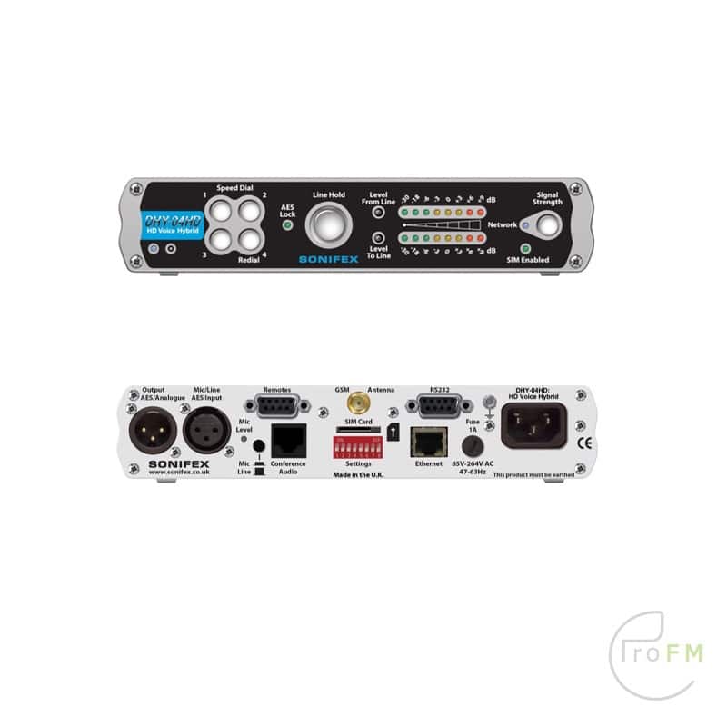 DHY-04HD Single Automatic HD Voice & GSM Hybrid, AES/EBU & Analogue I/O With Ethernet. The DHY-04HD HD Voice Hybrid is used on a 3G or GSM cellular (mobile) phone network instead of a telephone (POTS) line. The DHY-04HD can accept a SIM card in the rear panel slot and by connecting a suitable GSM antenna, it can receive and make high quality broadcast calls over the cellular network, converting the 3G or GSM call to the 4 wire audio signal to and from a connected mixing console. The module used in the DHY-04HD is quad-band GSM and 5 band UMTS/HSPA , so it can take and make calls on any 2G GSM, or 3G network.